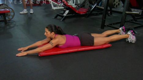 - Superman exercise: Lie on stomach, with arms extended shoulder-distance apart, and legs hips distance apart. (If the mobility in your shoulders limit you, try extending your arms in more of a “Y” or even a “T” position). With a long neck, lift one arm up off the ground while simultaneously lifting the opposite leg off the ground. Your back should lift up in this movement. This video shows several progressions of this movement, but it is always wise to get comfortable with the most conservative movement first. Reps: 8x.